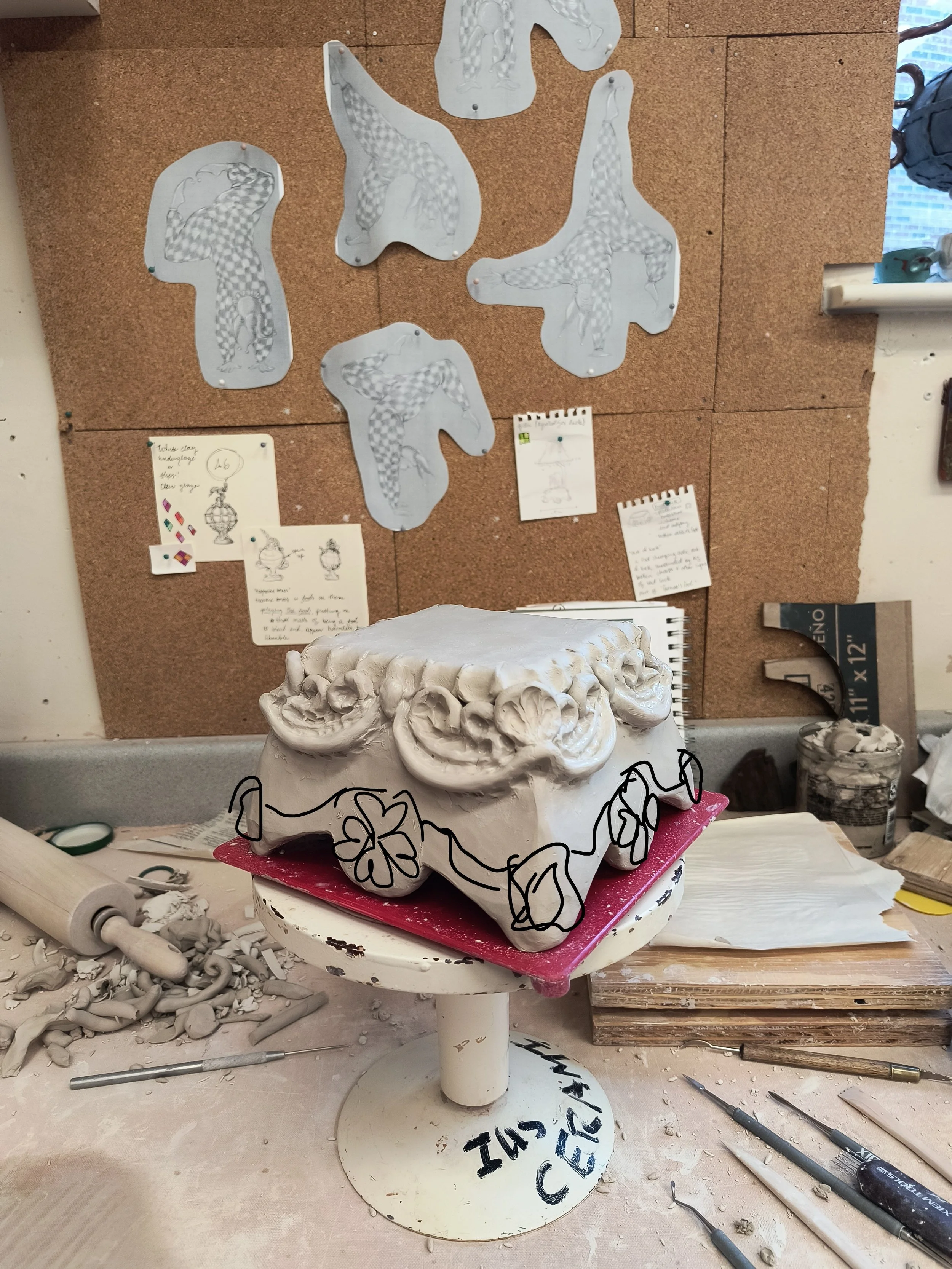 I also made a lot of progress on my 2nd round of lil boxes but I totally forgot to take any photos. Also I threw three shell vessels for the wood firing and they’re pretty cutie patootie but again no photos yet.