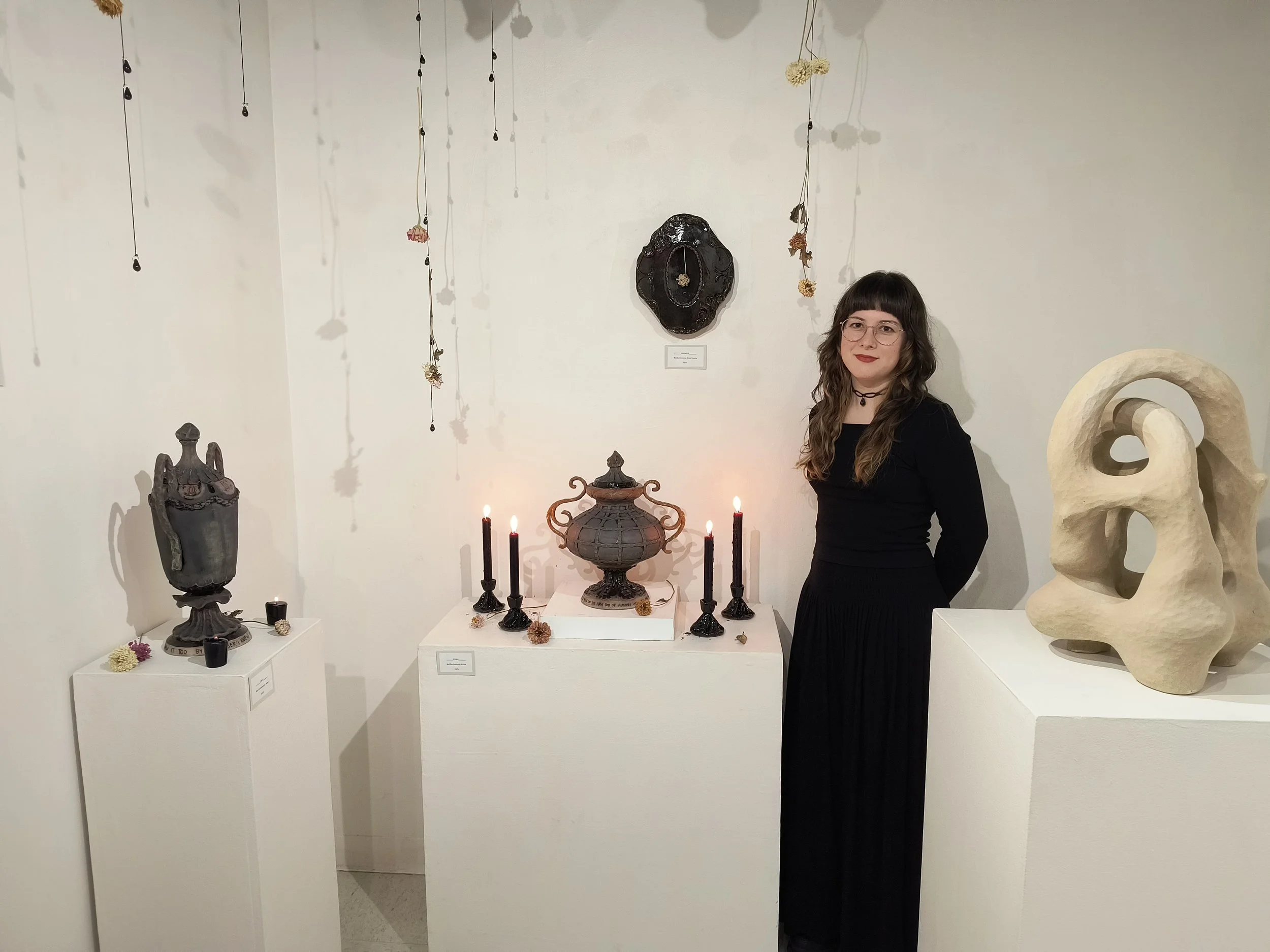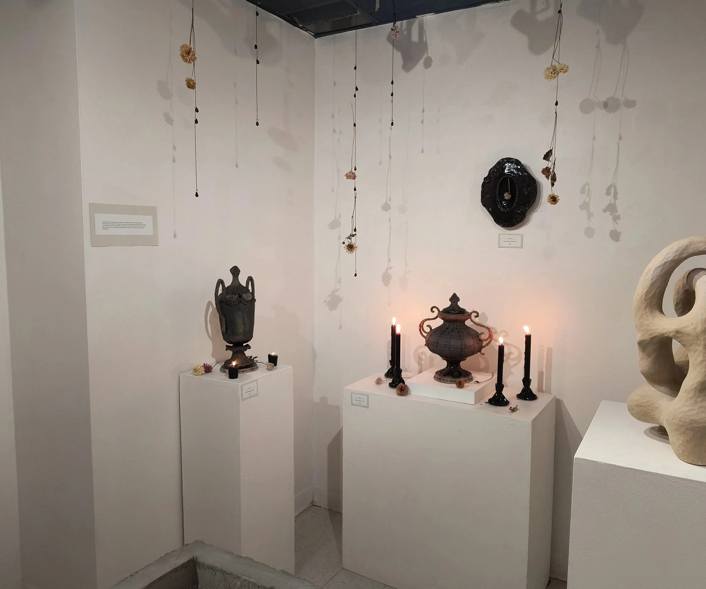 My work this semester explores the interior, emotional landscape of mourning a dear friendship that has ended. Drawing from historical and contemporary funeral practice, my work tells the story of this friendship in snippets, its beauty and its end. The work serves as both a memorial and a finality, and encourages the viewer to remember their own past friendships.